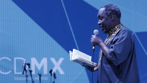 Ngũgi wa Thiong’o reads from his work in Mexico in 2017. He wrote across a huge variety of genres. Tania Victoria/Secretaría de Cultura CDMX/Flickr, CC BY-SA